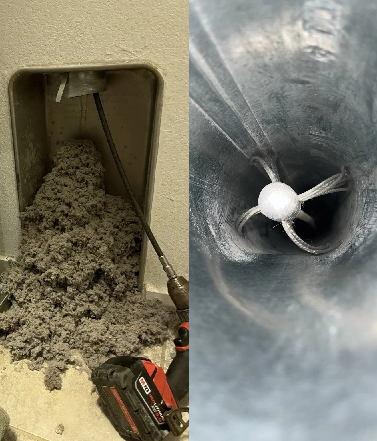 Dryer vent cleanings typically take around 30 minutes to 60 minutes. We sweep the dryer duct from end to end using a steel brush that spins to ensure all lint and debris are removed. This service also includes cleaning out the lint trap, transition hose, and dryer exhaust port.